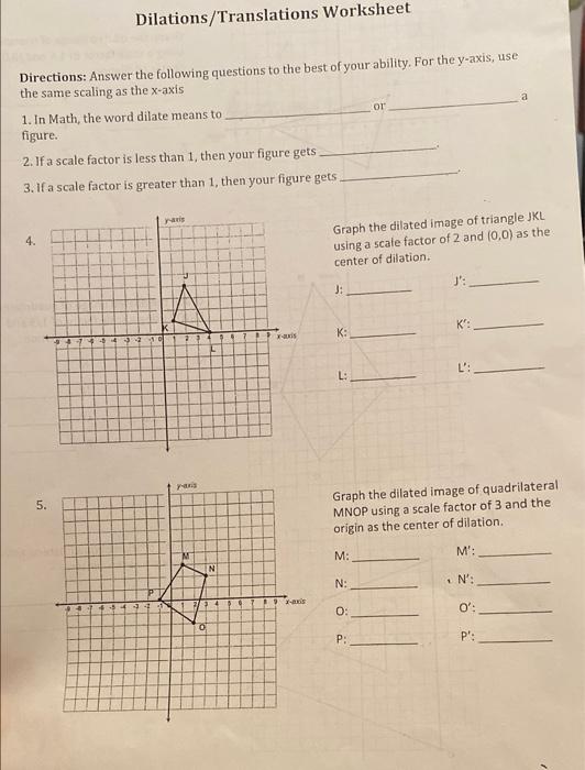 Translations Worksheet Answer Key Dilations And Translation Answer Key Worksheets - K12 Workbook. *Click on Open button to open and print to worksheet. 1. Dilations/TranslationsWorksheet 2. Geometry Dilations Name: 3. Dilations Date Period 4. Graph the image of the figure using the transformation given. 5.